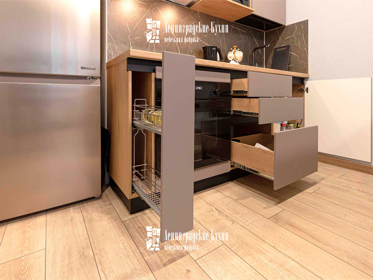 Это не просто кухонный гарнитур, а царство, где маленькие возвышаются могуче. Не размер кухни в доме имеет значение, а сердце в ней, и у «Арьи» сердце волка, скрытность тени и тепло хорошо ухоженного очага.