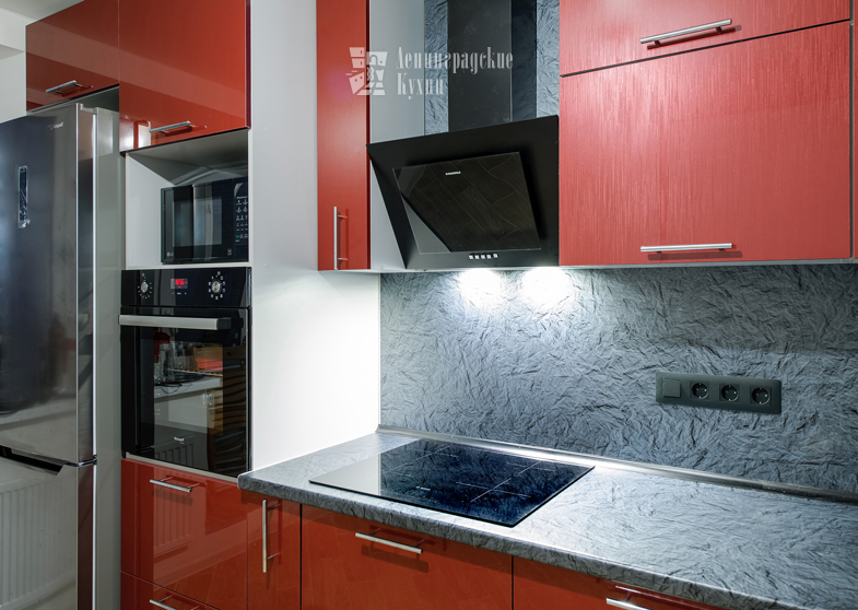 Гарнитур в красном цвете отличается притягательностью, всегда смотрится стильно и красиво.