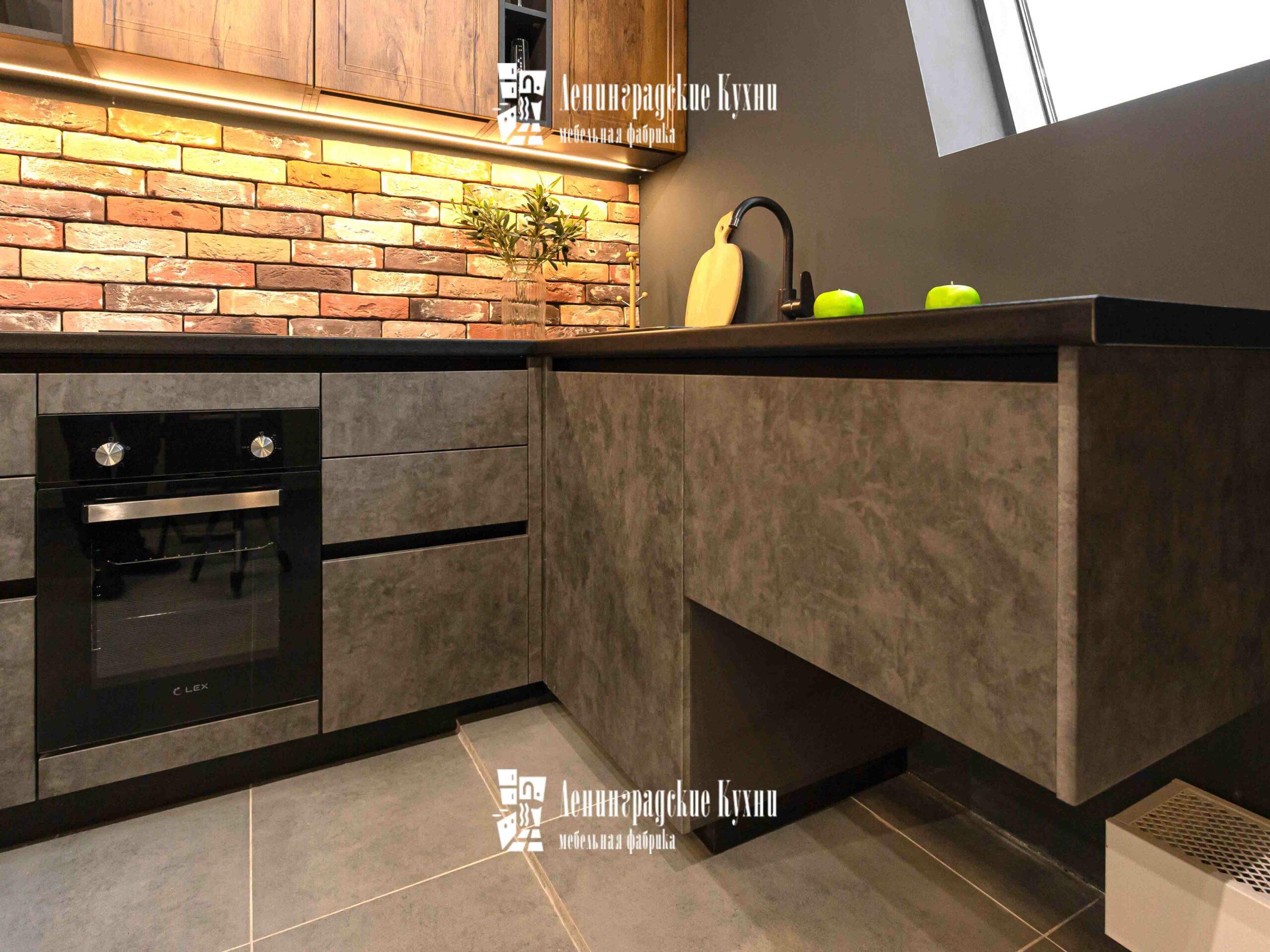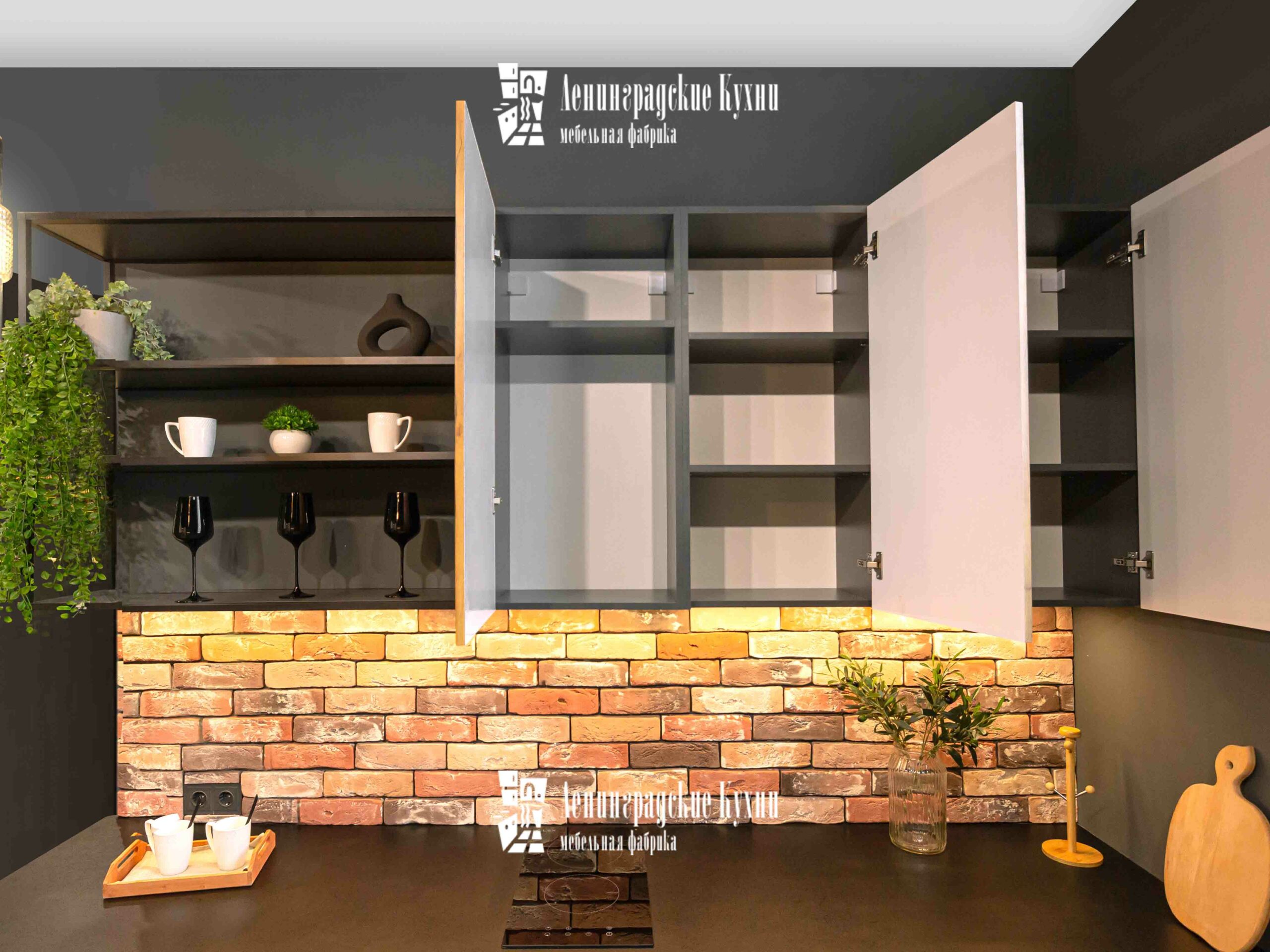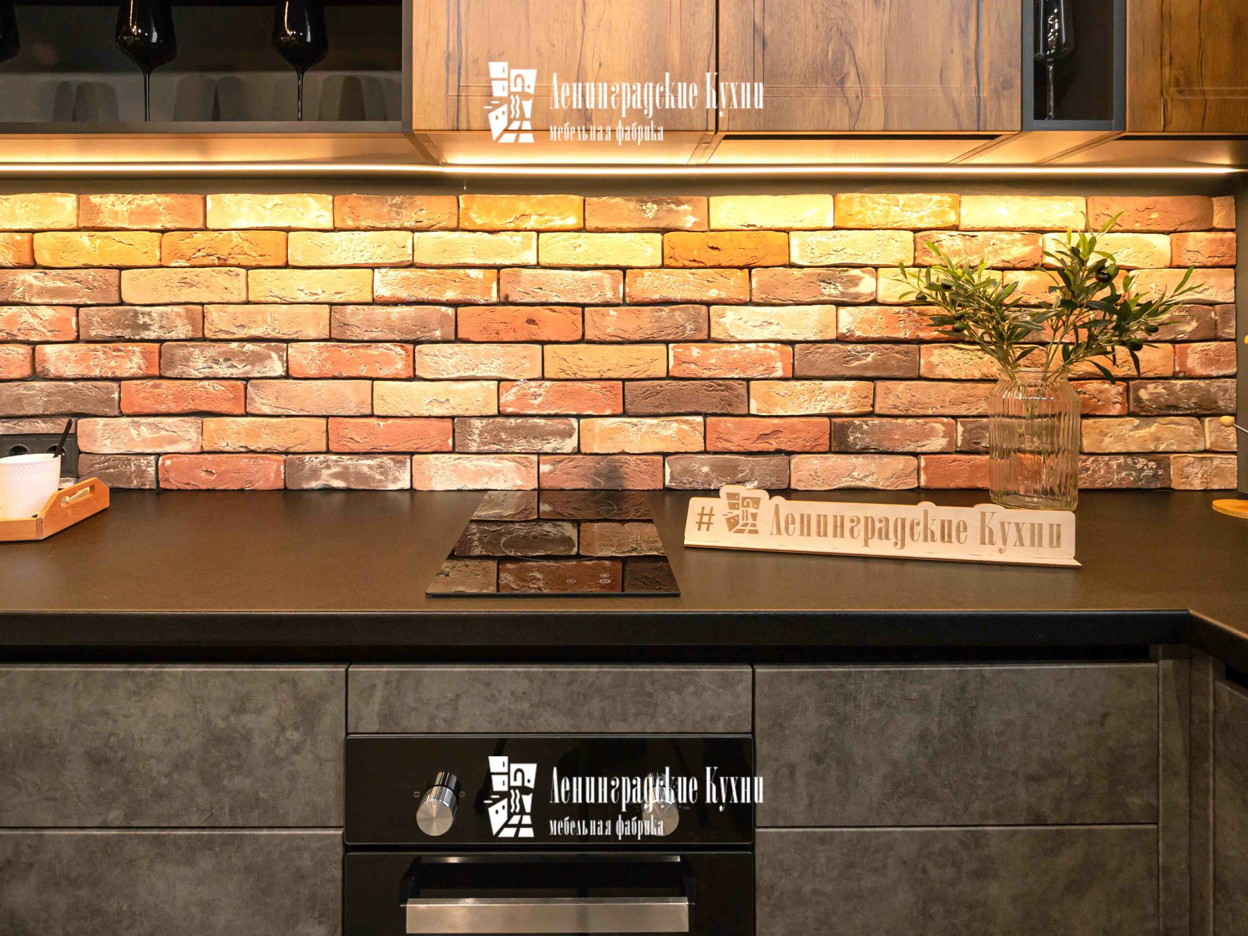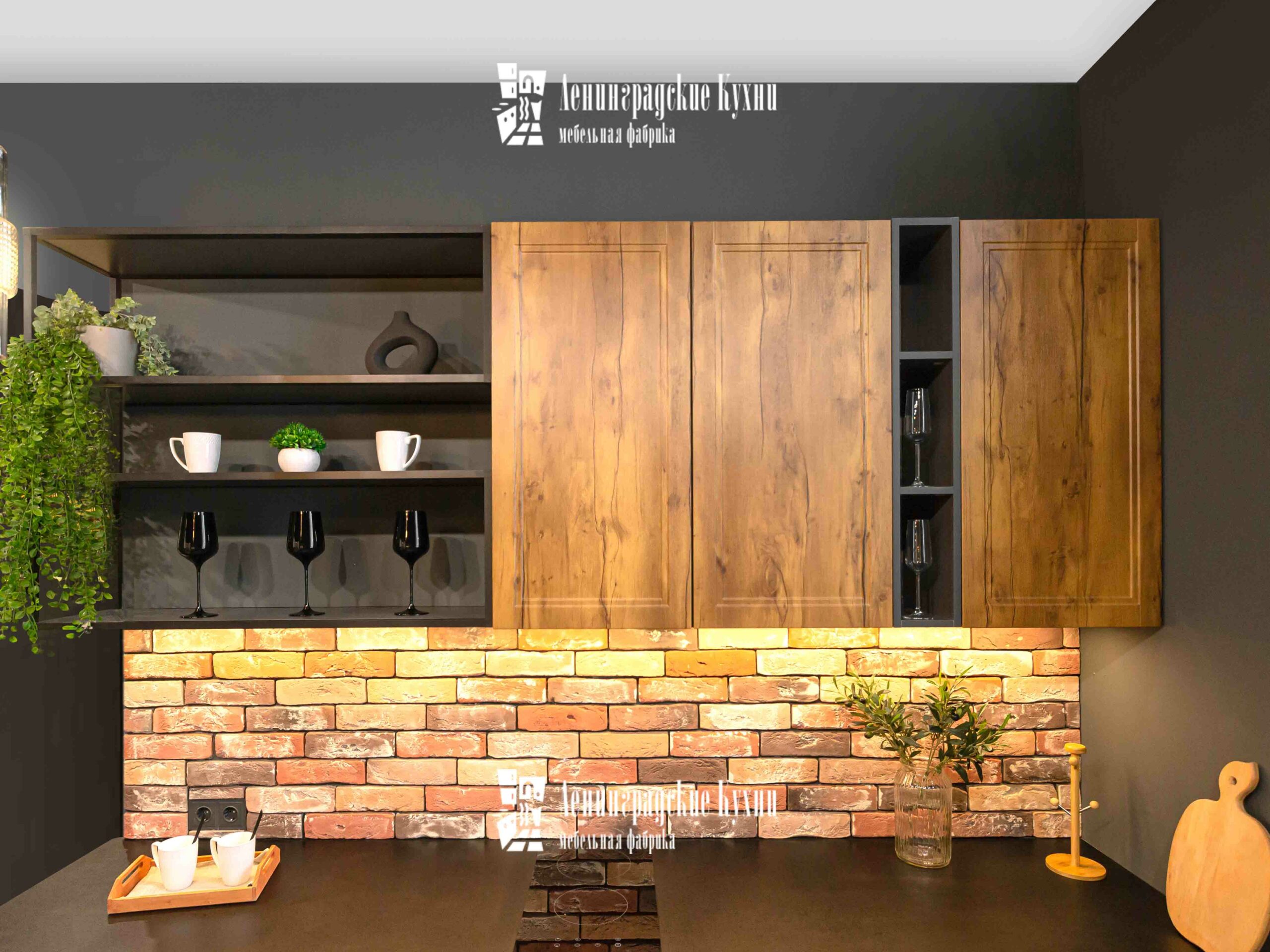 Темные оттенки гарнитура в сочетании с мягким освещением создают атмосферу интимности и сосредоточенности, идеально подходящую для кулинарных экспериментов. Просторные столешницы предоставляют достаточно места для приготовления пищи, позволяя легко разложить все необходимые ингредиенты и кухонные утвари. Удобный обеденный уголок с барными стульями предназначен не только для питания, но и для душевных бесед. Это место, где можно начать день с ароматного завтрака, перезарядиться в обеденный перерыв и закончить вечер за ужином с семьей.