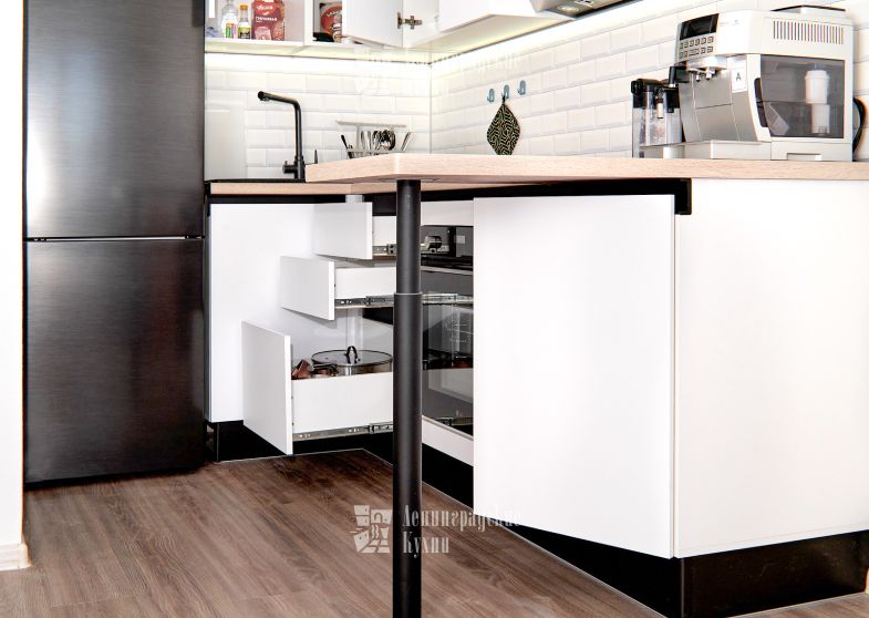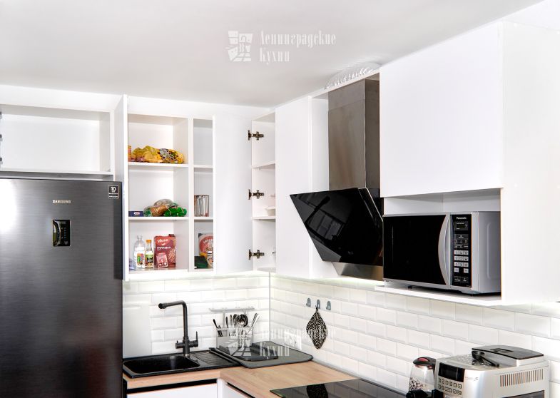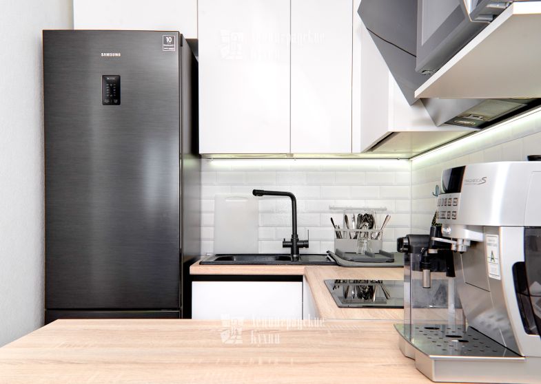 Хозяйка — молодая современная девушка, которая мечтала о кухне, соответствующей всем ее эстетическим и функциональным потребностям, а мы ей в этом с радостью помогли.